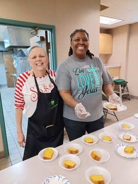 Various groups and organizations serve in our kitchen preparing food that is shared with those in need in our community.